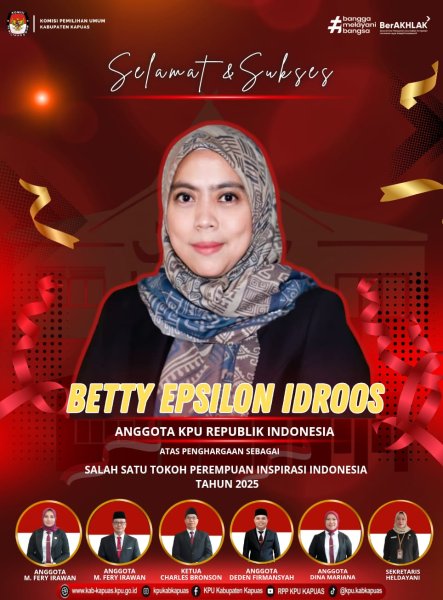 Kuala Kapuas - https://kab-kapuas.kpu.go.id/-, Segenap Jajaran KPU Kabupaten Kapuas mengucapkan Selamat dan Sukses kepada Anggota KPU Republik Indonesia, Betty Epsilon Idroos yang telah meraih Penghargaan "Salah Satu Tokoh Perempuan Inspirasi Indonesia Tahun 2025". ....