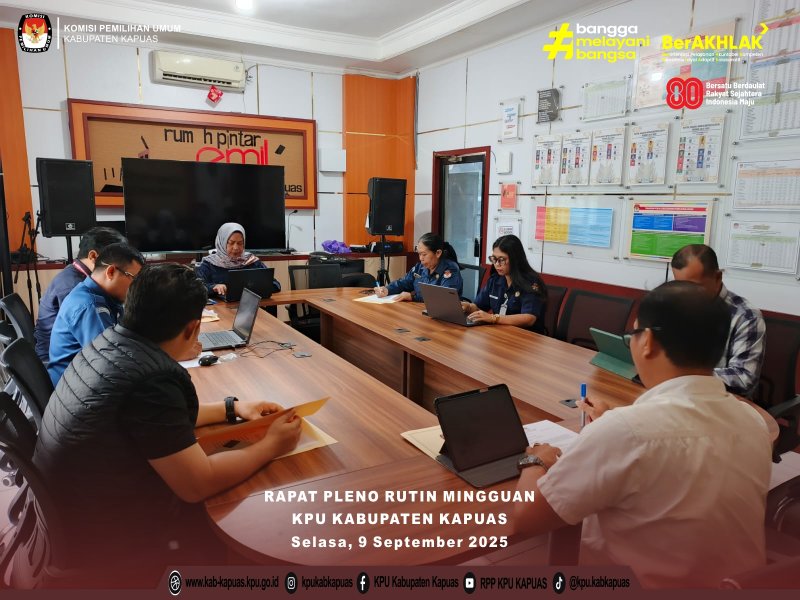 Kuala Kapuas - https://kab-kapuas.kpu.go.id/- Pelaksanaan Rapat Pleno Rutin Mingguan KPU Kabupaten Kapuas dilaksanakan di Ruang RPP KPU Kabupaten Kapuas.