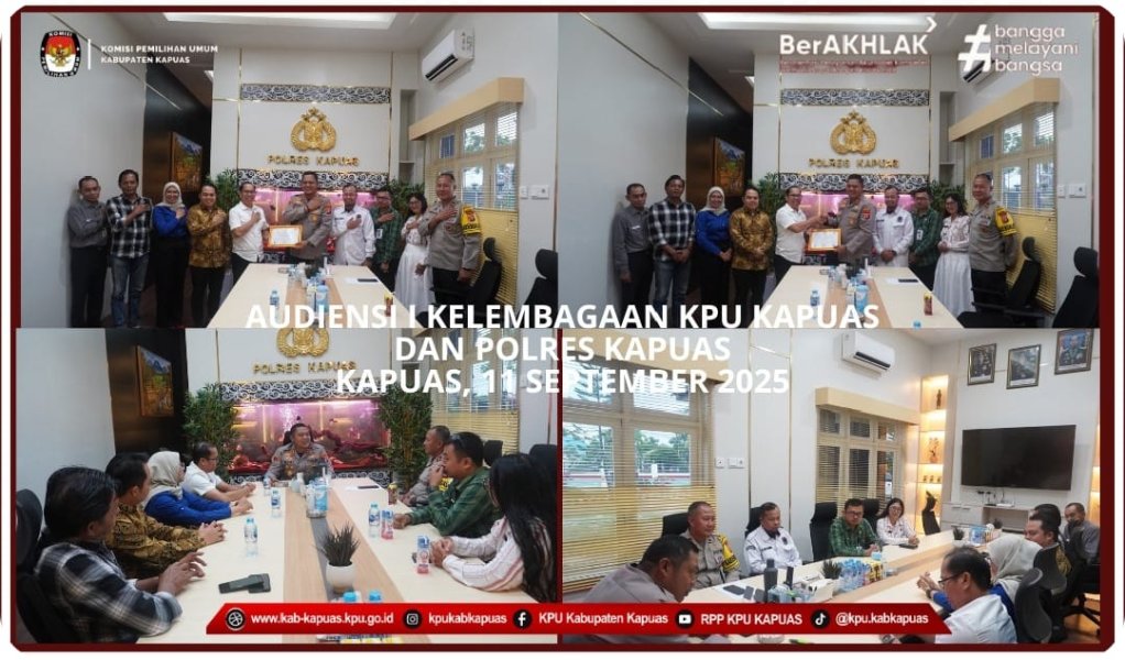 Kuala Kapuas - https://kab-kapuas.kpu.go.id/-, KPU Kabupaten Kapuas melaksanakan audiensi dengan Kapolres Kapuas dalam rangka menjaga Sinergitas Kelembagaan dan menyampaikan Kegiatan Non Tahapan yang dilakukan oleh KPU saat ini. Kegiatan ini berlangsung dalam suasana penuh kehangatan dan sinergi antarlembaga, pada Kamis (11/9/2025) bertempat di Ruang Polres Kapuas.