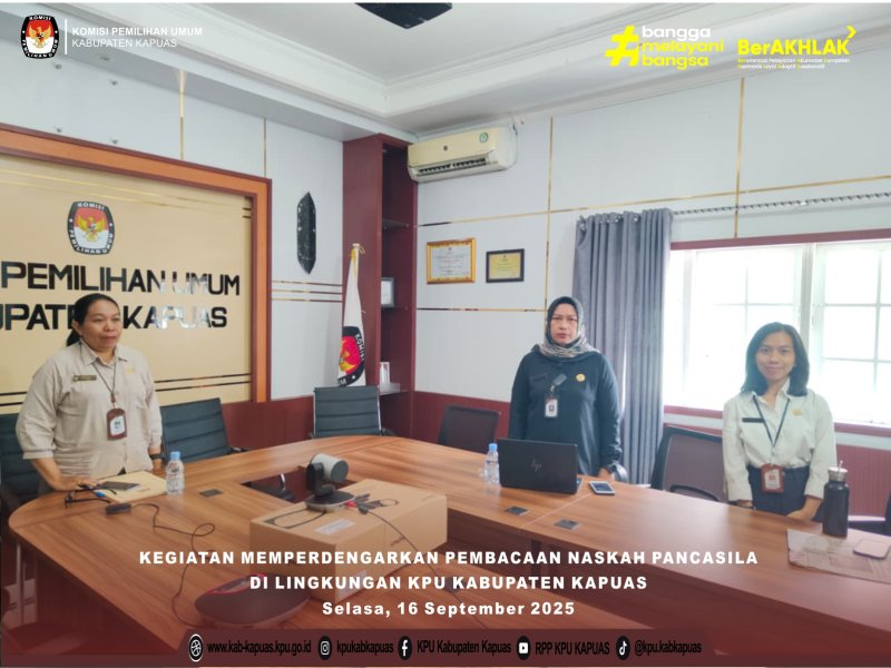 Kuala Kapuas - https://kab-kapuas.kpu.go.id/-, Komisi Pemilihan Umum Kabupaten Kapuas melaksanakan kegiatan Memperdengarkan Pembacaan Naskah Pancasila di Lingkungan Kantor Sekretariat Komisi Pemilihan Umum Kabupaten Kapuas pada hari Selasa, 16 September 2025. di Lingkungan KPU Kabupaten Kapuas.