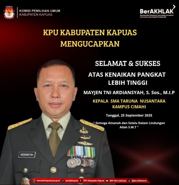 Selamat dan Sukses Atas Kenaikan Pangkat Setingkat Lebih Tinggi MAYJEN TNI ARDIANSYAH, S.Sos., M.I.P