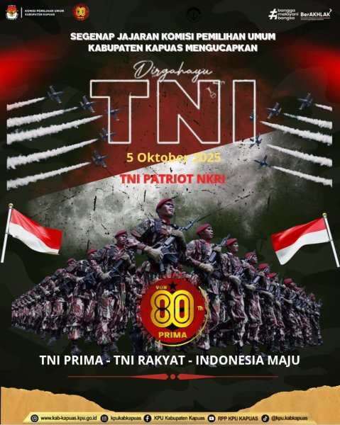 Kuala Kapuas - https://kab-kapuas.kpu.go.id/-, Keluarga Besar KPU Kabupaten Kapuas mengucapkan Selamat Ulang Tahun kepada Tentara Nasional Indonesia (TNI) ke 80 Tahun.