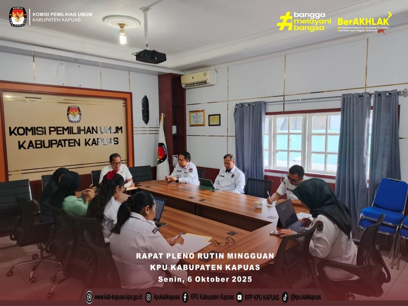 Kuala Kapuas - https://kab-kapuas.kpu.go.id/-, Pelaksanaan Rapat Pleno Rutin Mingguan KPU Kabupaten Kapuas dilaksanakan di Ruang RPP KPU Kabupaten Kapuas.