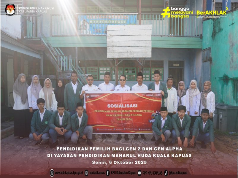 Kuala Kapuas - https://kab-kapuas.kpu.go.id/-, Komisi Pemilihan Umum (KPU) Kabupaten Kapuas kembali melaksanakan kegiatan Pendidikan Pemilih Calon Pemilih Pemula di Yayasan Pendidikan Manarul Huda Kuala Kapuas saat pelaksanaan Upacara Bendera di halaman sekolah, Senin (06/10/2025).