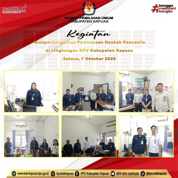 Kuala Kapuas - https://kab-kapuas.kpu.go.id/-,Komisi Pemilihan Umum Kabupaten Kapuas melaksanakan kegiatan Memperdengarkan Pembacaan Naskah Pancasila di Lingkungan Kantor Sekretariat Komisi Pemilihan Umum Kabupaten Kapuas pada hari Selasa, 7 Oktober 2025. di Lingkungan KPU Kabupaten Kapuas.