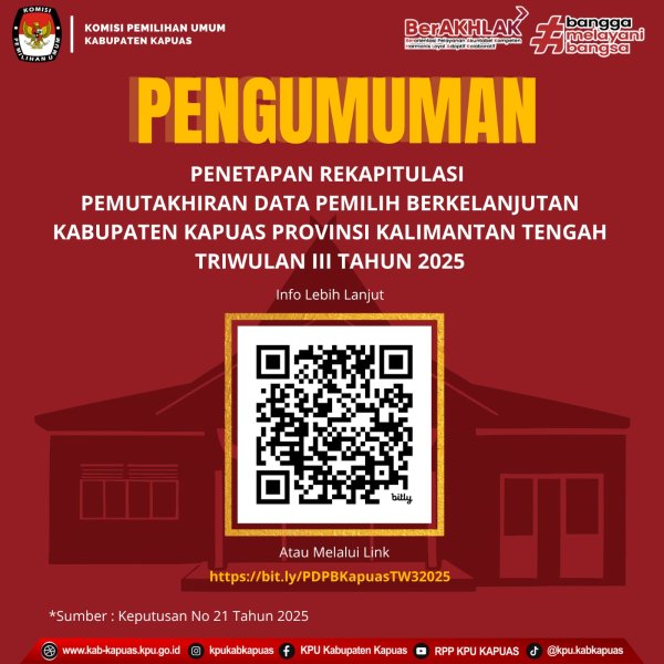 Kuala Kapuas - https://kab-kapuas.kpu.go.id/-, berikut adalah Rekapitulasi Pemutakhiran Data Pemilih Berkelanjutan (PDPB) Periode Triwulan ke-III Tahun 2025 KPU Kabupaten Kapuas.