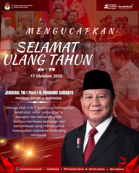 Kuala Kapuas - https://kab-kapuas.kpu.go.id/-, Keluarga besar KPU Kabupaten Kapuas mengucapkan Selamat Ulang Tahun kepada Presiden Republik Indonesia Jenderal (Purn) H. Prabowo Subianto ????????✍️