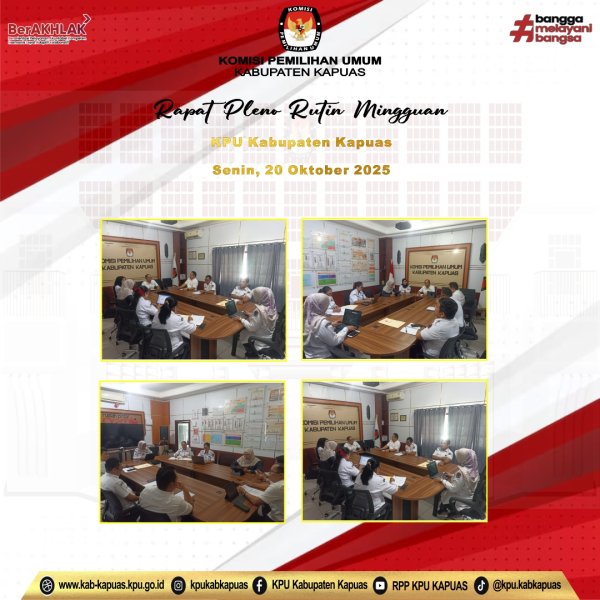 Kuala Kapuas - https://kab-kapuas.kpu.go.id/-, Pelaksanaan Rapat Pleno Rutin Mingguan KPU Kabupaten Kapuas dilaksanakan di Ruang RPP KPU Kabupaten Kapuas.