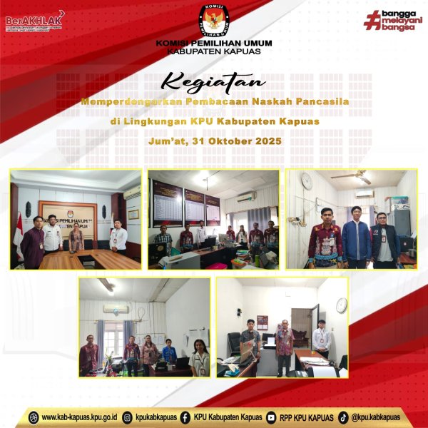 Kuala Kapuas - https://kab-kapuas.kpu.go.id/-, Komisi Pemilihan Umum Kabupaten Kapuas melaksanakan kegiatan Memperdengarkan Pembacaan Naskah Pancasila di Lingkungan Kantor Sekretariat Komisi Pemilihan Umum Kabupaten Kapuas pada hari Jum'at, 31 Oktober 2025. di Lingkungan KPU Kabupaten Kapuas.