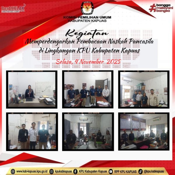Kuala Kapuas - https://kab-kapuas.kpu.go.id/-, Komisi Pemilihan Umum Kabupaten Kapuas melaksanakan kegiatan Memperdengarkan Pembacaan Naskah Pancasila di Lingkungan Kantor Sekretariat Komisi Pemilihan Umum Kabupaten Kapuas pada hari Selasa, 4 November 2025. di Lingkungan KPU Kabupaten Kapuas.