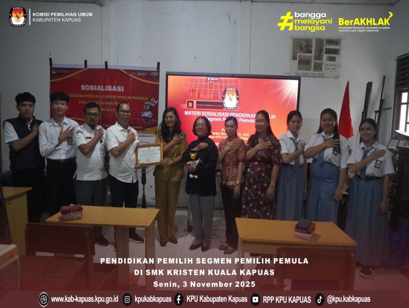 Kuala Kapuas - https://kab-kapuas.kpu.go.id/-, Komisi Pemilihan Umum (KPU) Kabupaten Kapuas kembali melaksanakan kegiatan Pendidikan Pemilih Segmen Pemilih Pemula di SMK Kristen Kuala Kapuas, Senin (3/11/2025).