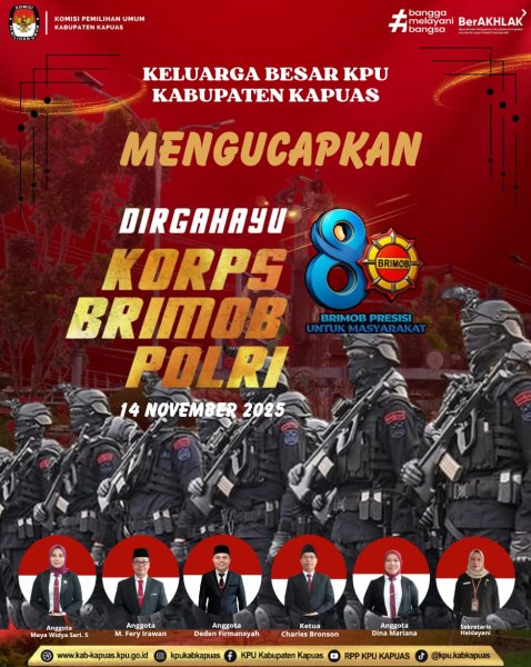 Kuala Kapuas - https://kab-kapuas.kpu.go.id/-, KPU Kabupaten Kapuas mengucapkan Dirgahayu Korps Brimob Polri ke-80.