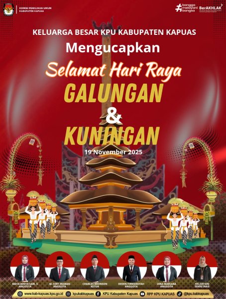 Kuala Kapuas - https://kab-kapuas.kpu.go.id/-, Segenap keluarga besar KPU Kabupaten Kapuas mengucapkan selamat merayakan hari Galungan dan Kuningan 19 November 2025 bagi #temanpemilih yang merayakan .