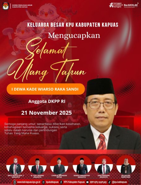Kuala Kapuas - https://kab-kapuas.kpu.go.id/- Keluarga Besar KPU Kabupaten Kapuas mengucapkan Selamat Ulang Tahun Bapak I Dewa Kade Wiarso Raka Sandi Anggota DKPP RI