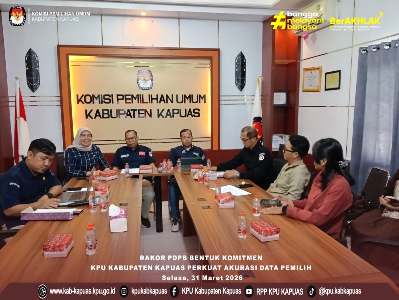 Kuala Kapuas - https://kab-kapuas.kpu.go.id/- Komisi Pemilihan Umum Kabupaten Kapuas terus memperkuat Kualitas Data Pemilih dengan mengadakan Rapat Koordinasi Pemutakhiran Data Pemilih Berkelanjutan (PDPB) Triwulan I Tahun 2026. (31/03/2026)