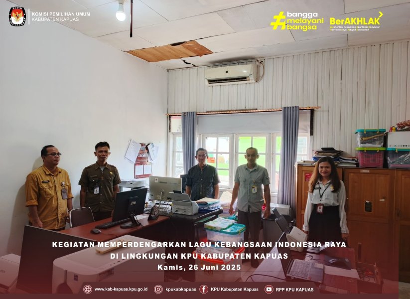 Komisi Pemilihan Umum Kabupaten Kapuas Giat Memperdengarkan Lagu kebangsaan Indonesia Raya di di Lingkungan Kantor KPU Kabupaten Kapuas pada hari Kamis, 26 Juni 2025.