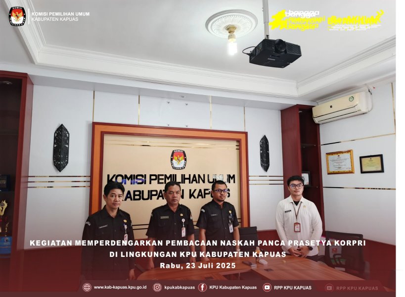 Komisi Pemilihan Umum Kabupaten Kapuas giat Memperdengarkan Pembacaan Naskah Panca Prasetya KORPRI di Lingkungan Kantor Sekretariat Komisi Pemilihan Umum Kabupaten Kapuas pada hari Rabu, 23 Juli 2025. di Lingkungan KPU Kabupaten Kapuas.