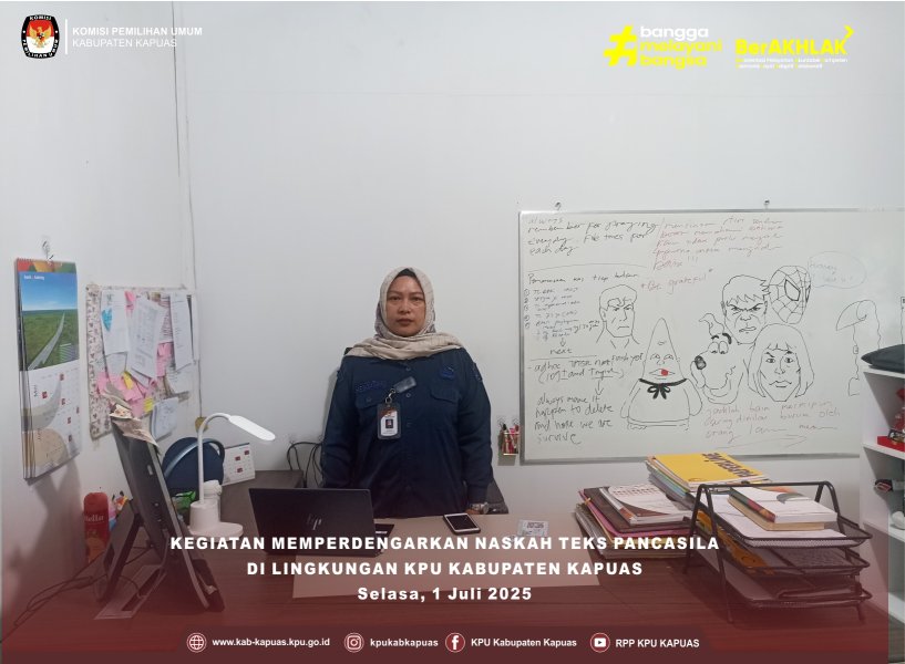 Komisi Pemilihan Umum Kabupaten Kapuas melaksanakan kegiatan Memperdengarkan Pembacaan Naskah Pancasila di Lingkungan Kantor Sekretariat Komisi Pemilihan Umum Kabupaten Kapuas pada hari Selasa, 1 Juli 2025. di Lingkungan KPU Kabupaten Kapuas.