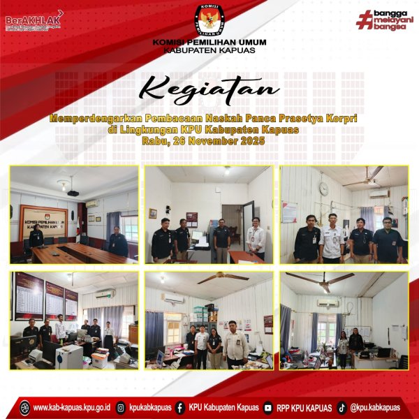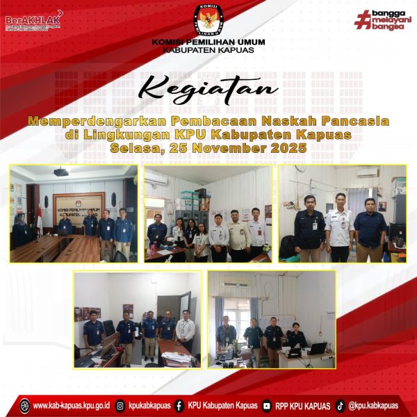 Kegiatan yang dimulai pada pukul 08.00 WIB ini diikuti oleh para Kepala Subbagian (Kasubbag) Keuangan, Umum dan Logistik, Tanti Lupitae, serta Kasubbag Parhubmas dan SDM, Gagah Christiantoro beserta staf yang terdiri dari CPNS, PNS, dan PPPK di lingkungan Sekretariat KPU Kabupaten Kapuas.