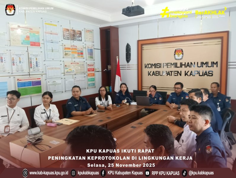 Kuala Kapuas - https://kab-kapuas.kpu.go.id/- Komisi Pemilihan Umum Kabupaten Kapuas mengikuti Rapat Peningkatan Keprotokolan bagi Sekretariat KPU Provinsi dan Sekretariat KPU Kabupaten/Kota seluruh Indonesia yang diselenggarakan secara virtual melalui Zoom Meeting pada Selasa (25/11/2025).