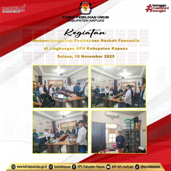 Dari KPU Kabupaten Kapuas, kegiatan ini diikuti oleh Sekretaris KPU Kabupaten Kapuas, Heldayani yang turut didampingi oleh Kasubbag Keuangan, Umum, dan Logistik Tanti Lupitae, Kasubbag Partisipasi Masyarakat dan SDM, Gagah Christiantoro, Plt. Kasubbag Teknis Penyelenggara, Siti Nur Rahmayanti serta diikuti seluruh ASN KPU Kabupaten Kapuas, terdiri atas PNS, CPNS, dan PPPK.