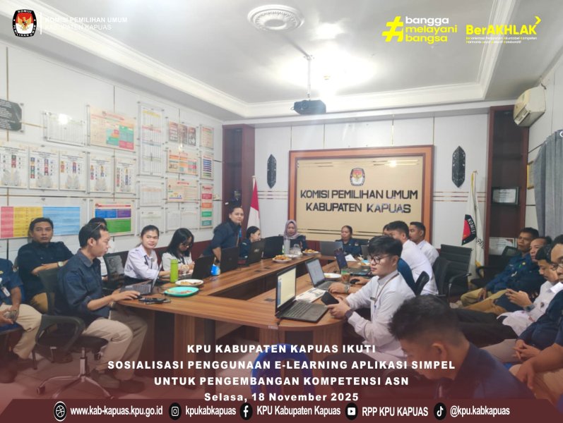 Melalui kegiatan sosialisasi ini, Sekretaris KPU Kabupaten Kapuas, Heldayani, menyampaikan arahan "bahwa seluruh pegawai dapat meningkatkan kemampuan dalam memanfaatkan teknologi pembelajaran digital untuk meningkatkan dan mengembangkan kompetensi aparatur dalam mendukung profesionalitas kerja di dalam penyelenggaraan pemilu dan pilkada maupun pada masa non tahapan.
