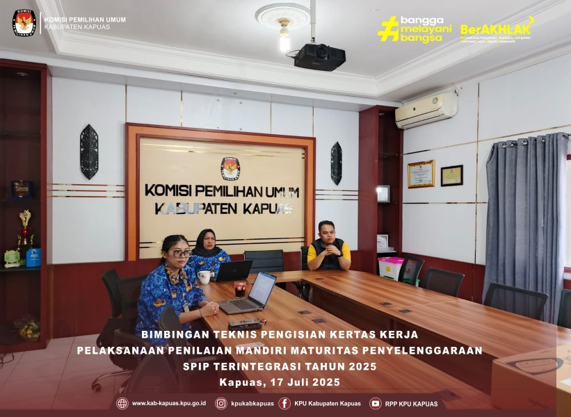 KPU Kabupaten Kapuas mengikuti Bimbingan Teknis Pengisian Kertas Kerja Pelaksanaan Penilaian Mandiri Maturitas Penyelenggara SPIP Terintegrasi Tahun 2025 secara Daring, Kamis (17/07/2025). Kegiatan ini diikuti oleh Ketua KPU Kabupaten Kapuas Deden Firmansyah, serta Sekretaris Heldayani, Plt. Kasubbag Teknis dan Hukum Siti Nur Rahmayanti, serta staf Dody Irawan Ramli. Pelaksanaan kegiatan ini bertujuan untuk memperkuat kapasitas tim asesor dalam melakukan penilaian mandiri atas maturitas SPIP Terintegrasi di lingkungan KPU, guna mendukung terwujudnya tata kelola pemerintahan yang baik, transparan, dan akuntabel. serta memberikan pemahaman yang mendalam kepada KPU tentang pedoman dan prosedur pengisian kertas kerja penilaian mandiri sesuai Peraturan BPKP Nomor 5 Tahun 2021 tentang Penilaian Maturitas Penyelenggaraan Sistem Pengendalian Intern Pemerintah Terintegrasi pada Kementerian/Lembaga/Pemerintah Daerah, sehingga penilaian maturitas SPIP dapat dilakukan secara akurat dan konsisten.