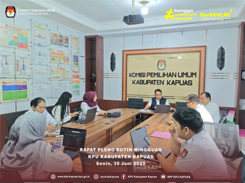 KPU Kabupaten Kapuas melaksanakan Rapat Pleno Rekapitulasi Daftar Pemilih Berkelanjutan (PDPB) Triwulan II Tahun 2025 pada Rabu, 2 Juli 2025, bertempat di Aula Rumah Pintar Pemilu (RPP) KPU Kabupaten Kapuas.