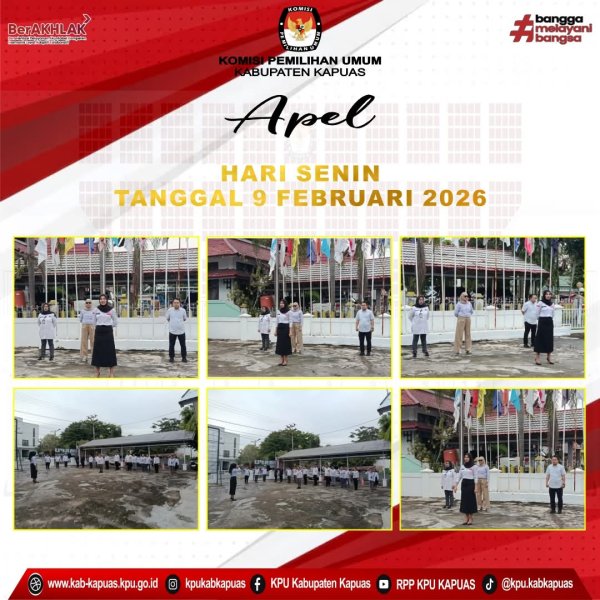 Kuala Kapuas - https://kab-kapuas.kpu.go.id/- KPU Kabupaten Kapuas Melaksanakan Apel Pagi Senin, (9/2/2026) di Halaman Kantor KPU Kabupaten Kapuas,